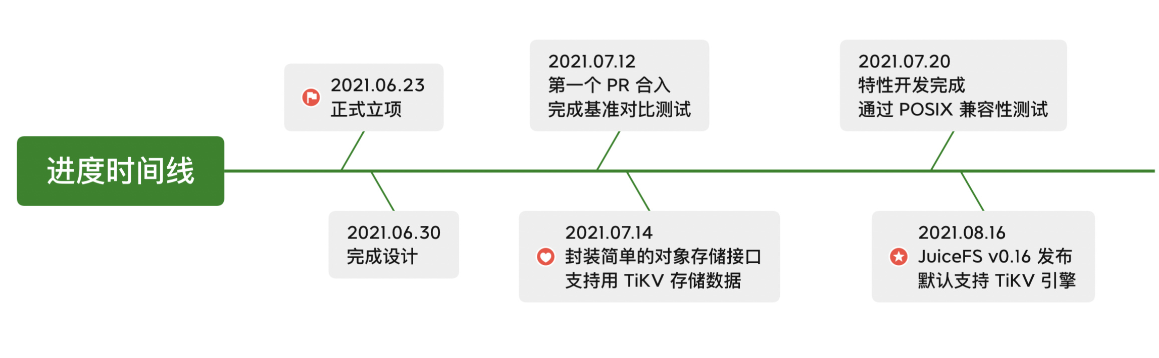 目前主要功能都已开发完毕并于 V0.16 版本发布,且通过了 pjdfstest 测试。已有用户在测试以及生产环境中使用。JuiceFS 未来将把 TiKV 作为大规模生产环境的首推元数据引擎,在保证兼容的情况下,积极引进 TiKV 的新特性。