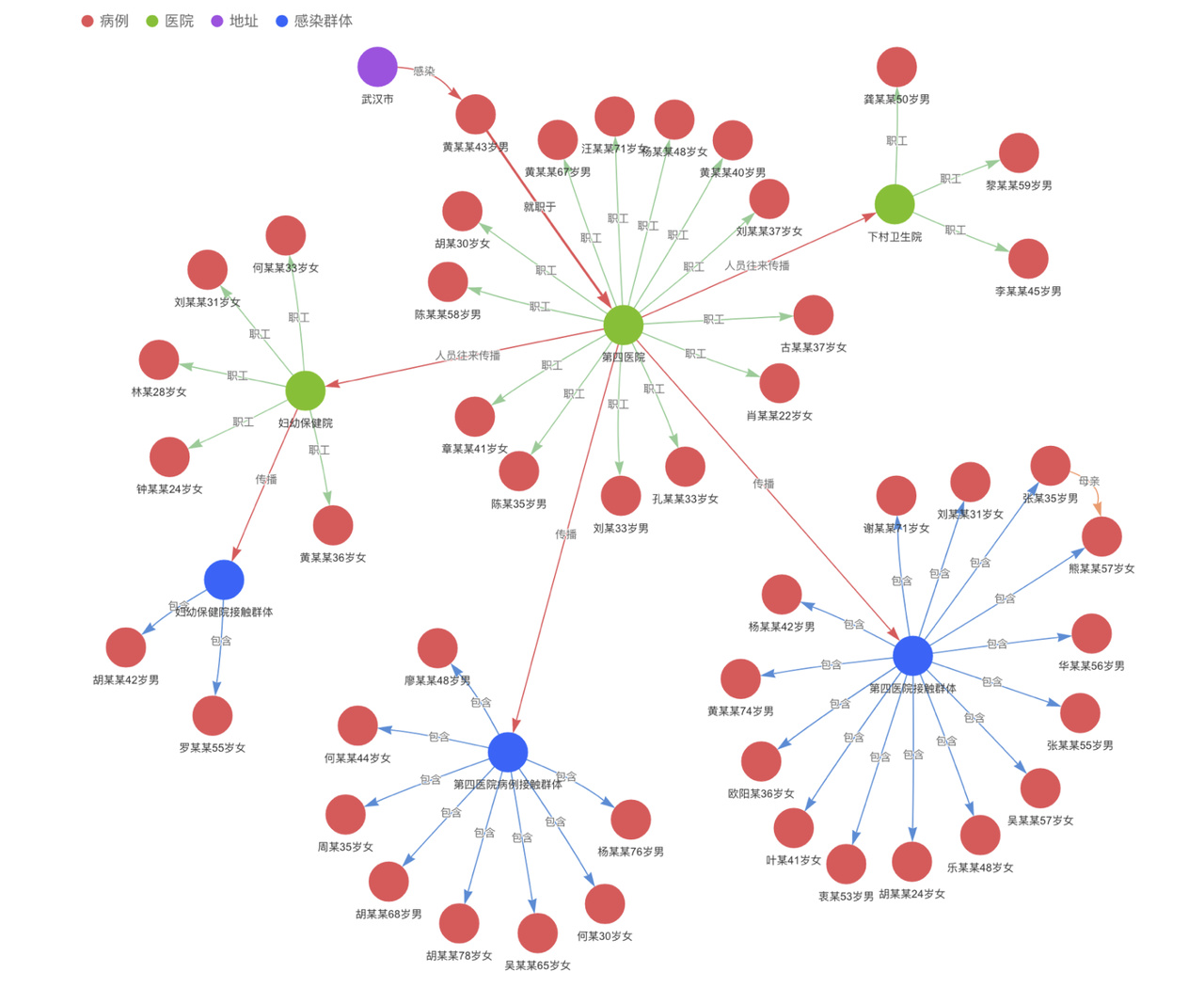 导入数据【新余市新冠肺炎数据集】,通过 HugeGraph-Hubble 界面查看图谱效果: