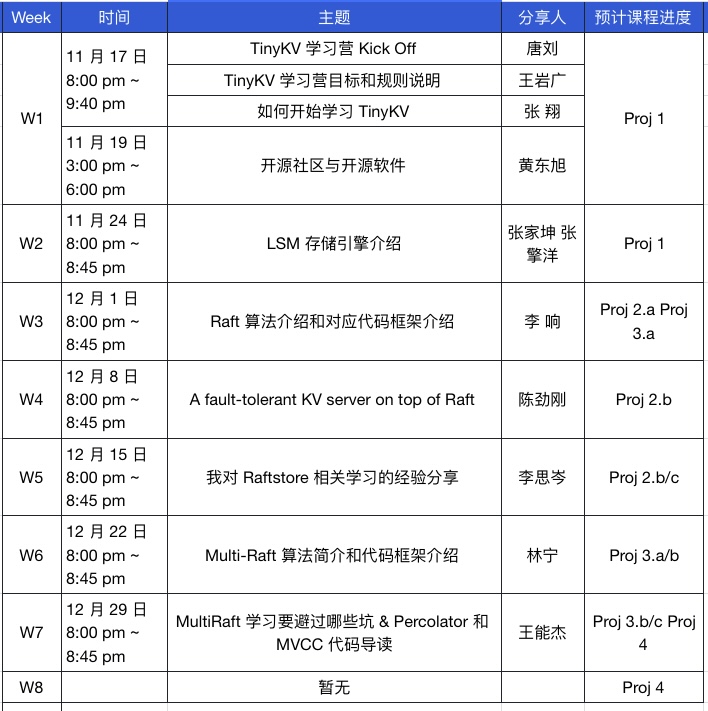 Talent Plan 2021 KV 学习营信息总览