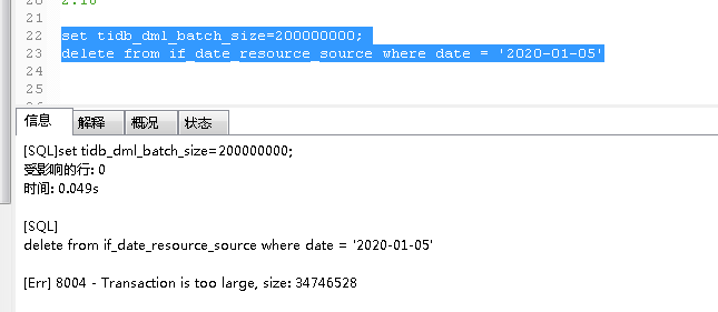 set @@tidb_batch_delete = 1 , @@tidb_dml_batch_size = 20000000000000;