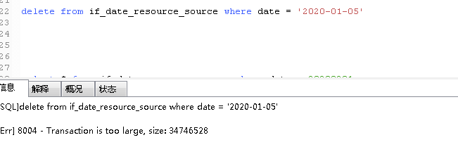 * 【问题描述】:删除一天的数据提示tracsation is too large ,size 34746528