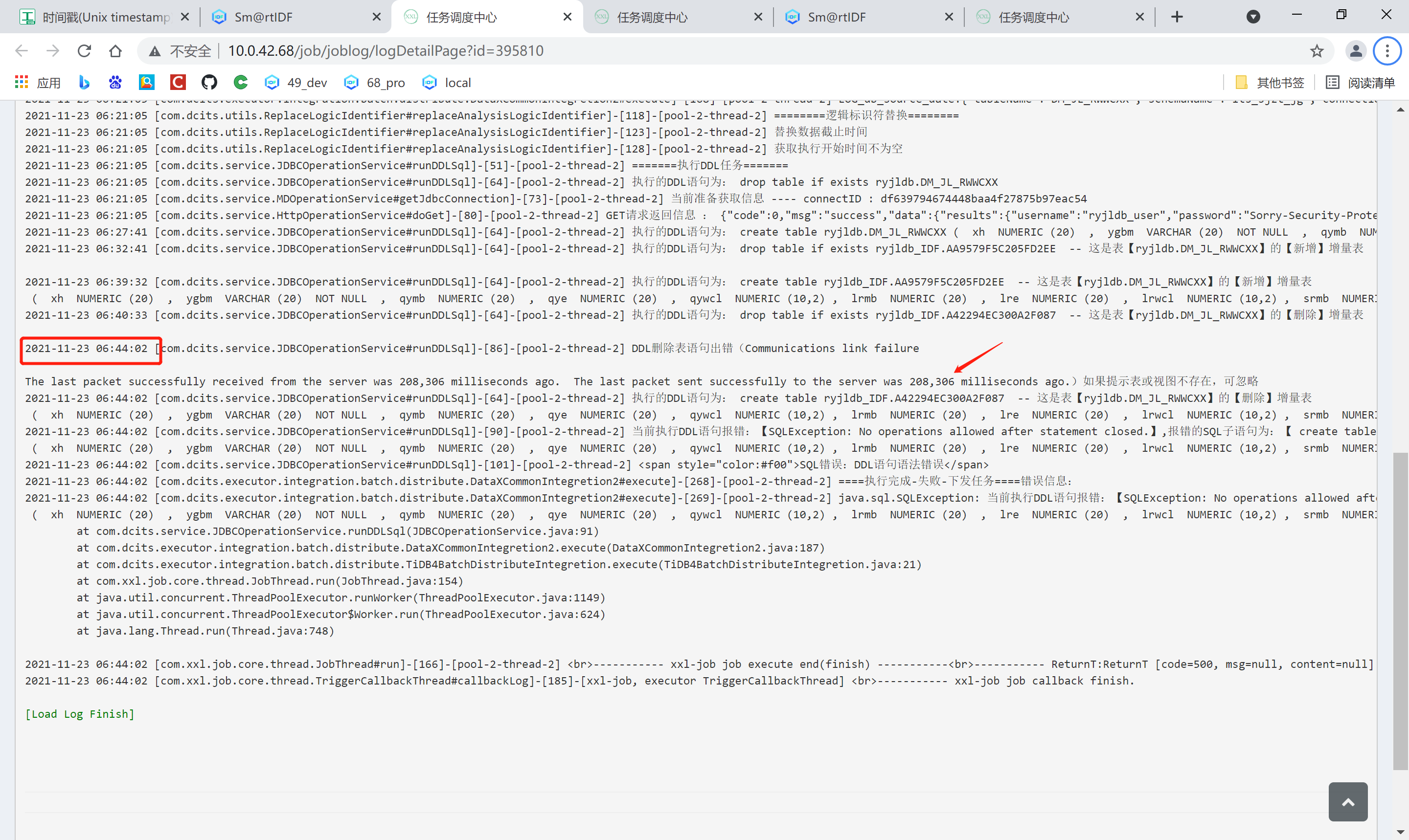 应用那边有批量的drop表重建表的动作