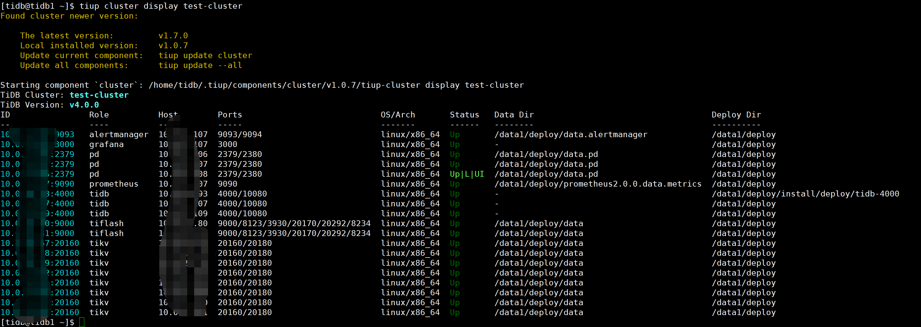 TiUP Cluster Display 信息