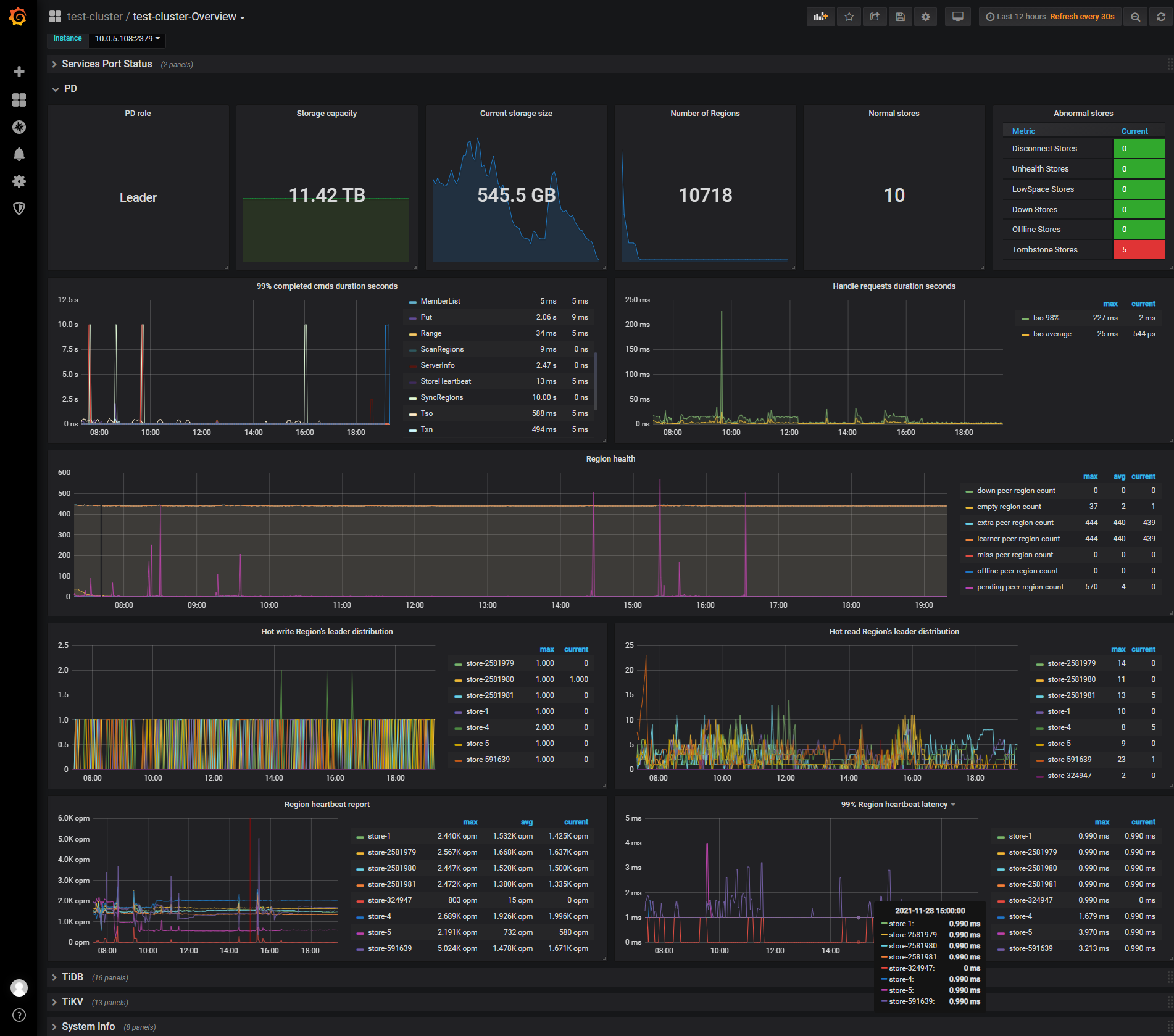 然后发下grafana上pd的监控面板信息。
