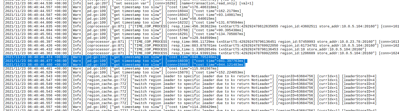 要发下对应时间段pd的日志,目前看是跟pd失联导致。