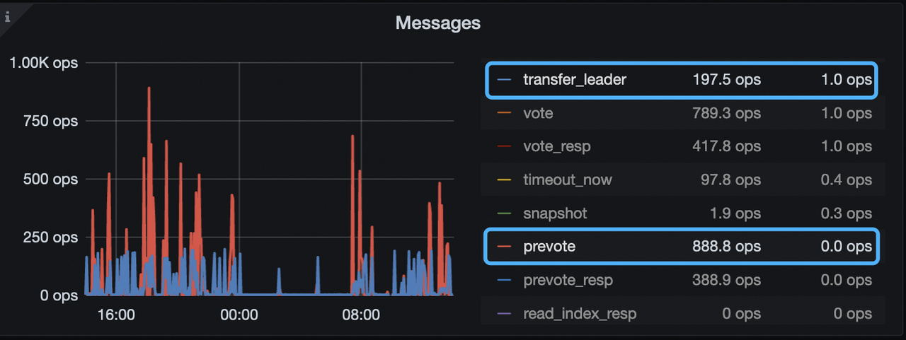 - TiKV-Details → Raft message → Messages 重点看下下面两个 metrics 的值