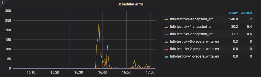- tikv 节点因异常无法提供服务:如 OOM,网络通信,磁盘卡顿或服务器故障等等,具体可以通过 tikv.log,网络通讯监控等信息进行确认