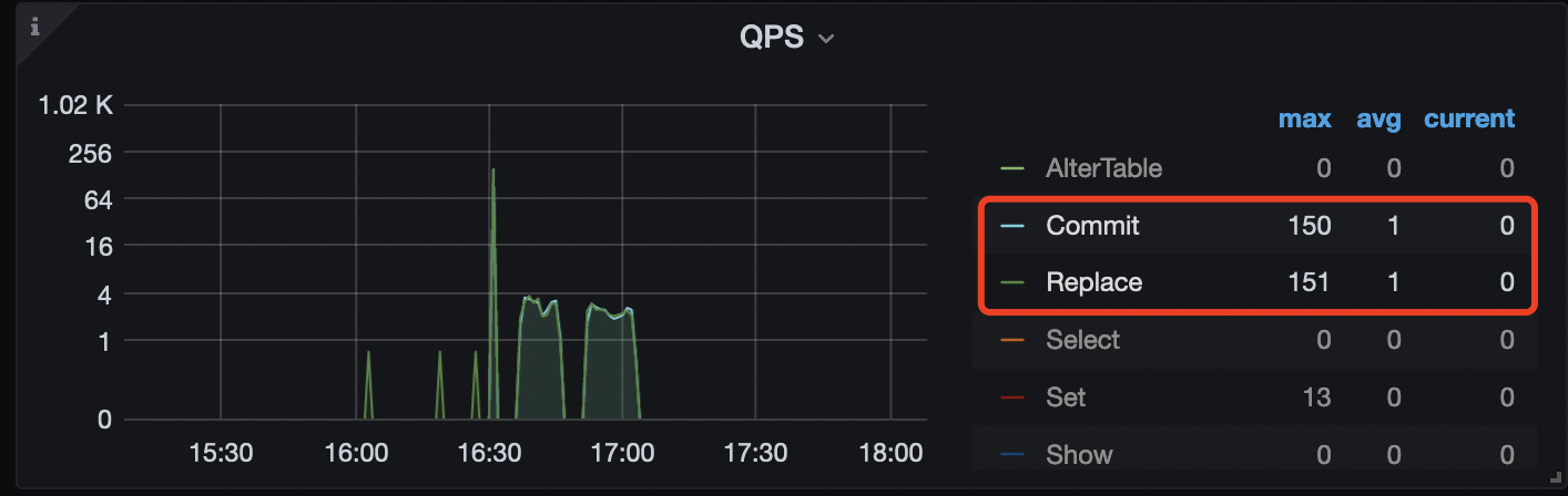 与业务沟通,17.04前后20分钟,都在导入新数据。导入的量级应该只有700w ,用 replace 导入的,新数据有400w ,剩下300w是更新。