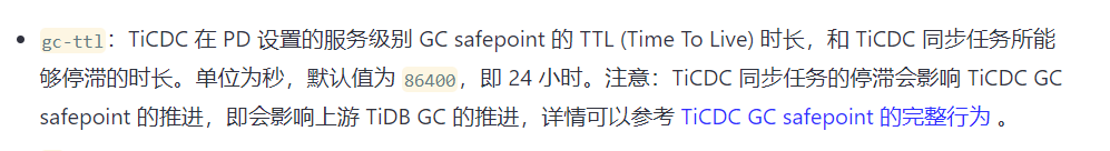 https://docs.pingcap.com/zh/tidb/dev/troubleshoot-ticdc#ticdc-的-gc-ttl-是什么