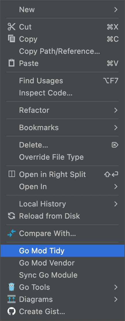 go.mod文件 - 选择 Go Mod Tidy 或者 Sync Go Module
