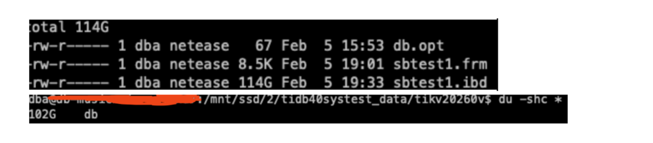 5 亿 68487932199-96439406143-93774651418-41631865787-96406072701-20604855487-25459966574-28203206787-41238978918-19503783441 这种类似的随机字符数据 innodb 114G,⽽ TiDB 102G。