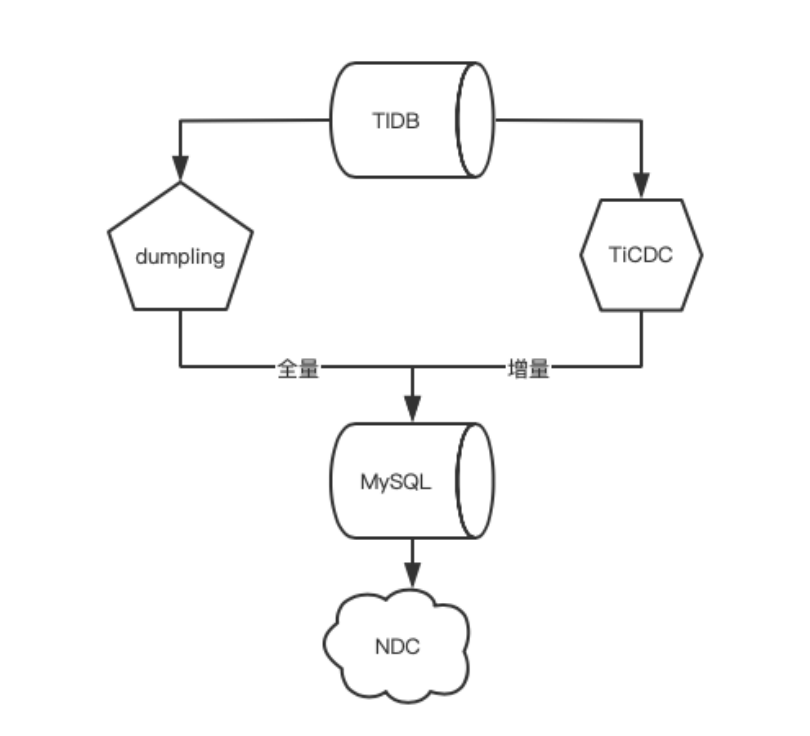 我们会先将 TiDB ⽇志通过专⽤⼯具回放⾄⼀个中转 MySQL,再⽤ NDC 订阅,保证原有数据链路基本不变。