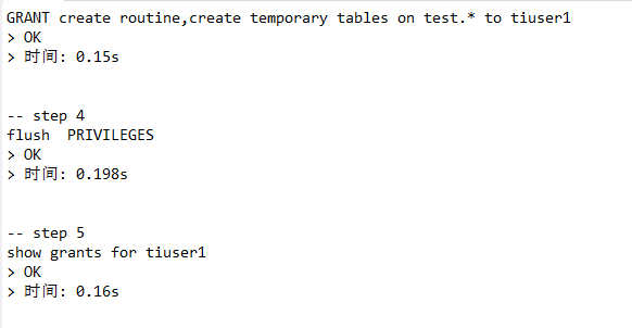 | GRANT SELECT, INSERT, CREATE ROUTINE ON rollback_test.* TO ‘user_test’@’%’ |