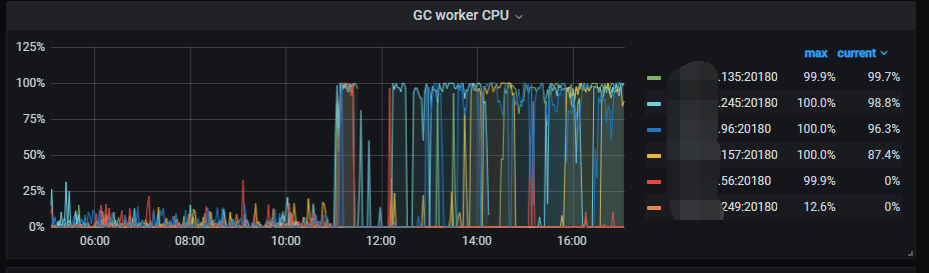 storage.block-cache 这个参数我这是默认得, 在5.0.3版本得时候完全没问题。 主要升级后出现gc worker cpu 一直满,然后对应得机器 轮番出现oom