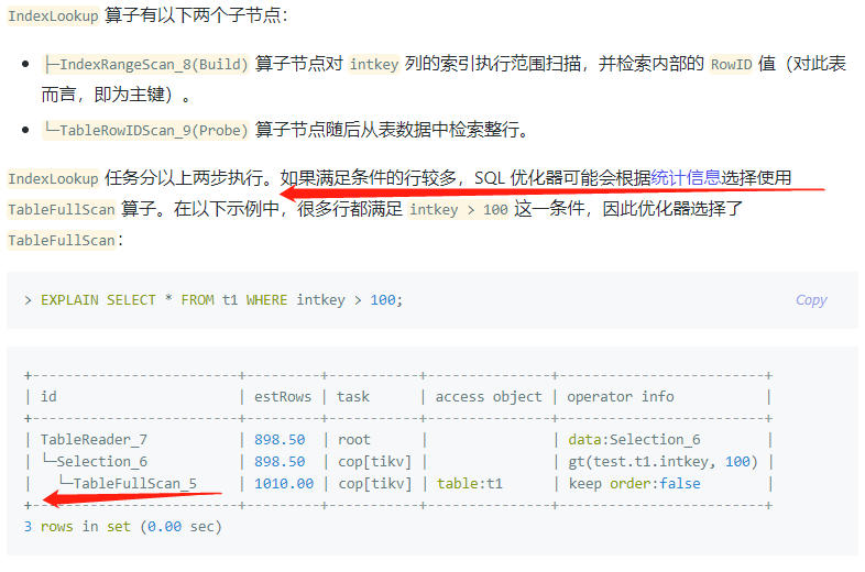 | │ │ │ │ │ └─Selection_53 | 0.01 | 1 | cop[tikv] | | tikv_task:{time:0s, loops:1}, scan_detail: {total_process_keys: 5, total_keys: 6} | eq(tpch_10.region.r_name, “MIDDLE EAST”) | N/A | N/A |