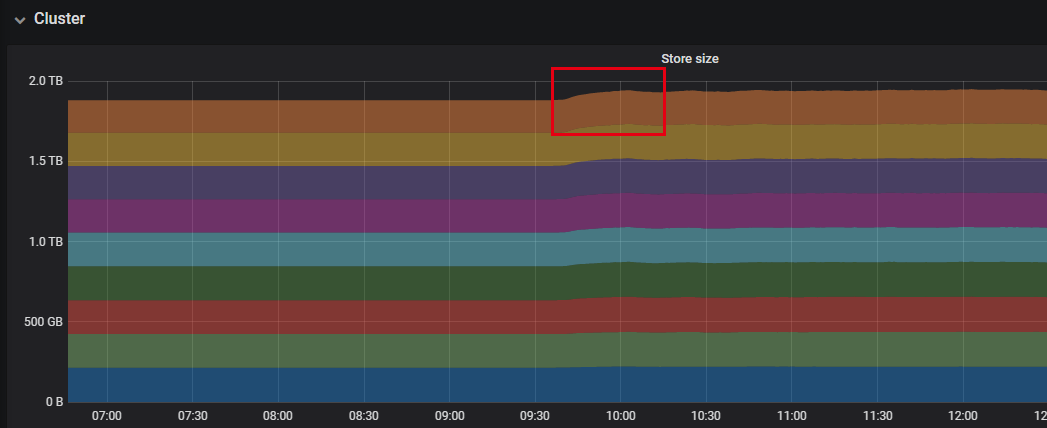 然后进行压测 观察到tikv容量只是上涨了一段时间 然后趋于平衡 在整个压测过程中 gc的快照版本应该都保留下来 空间应该是一直往上涨的吧 ?但是现在看到上涨了一段时间 然后趋于平衡