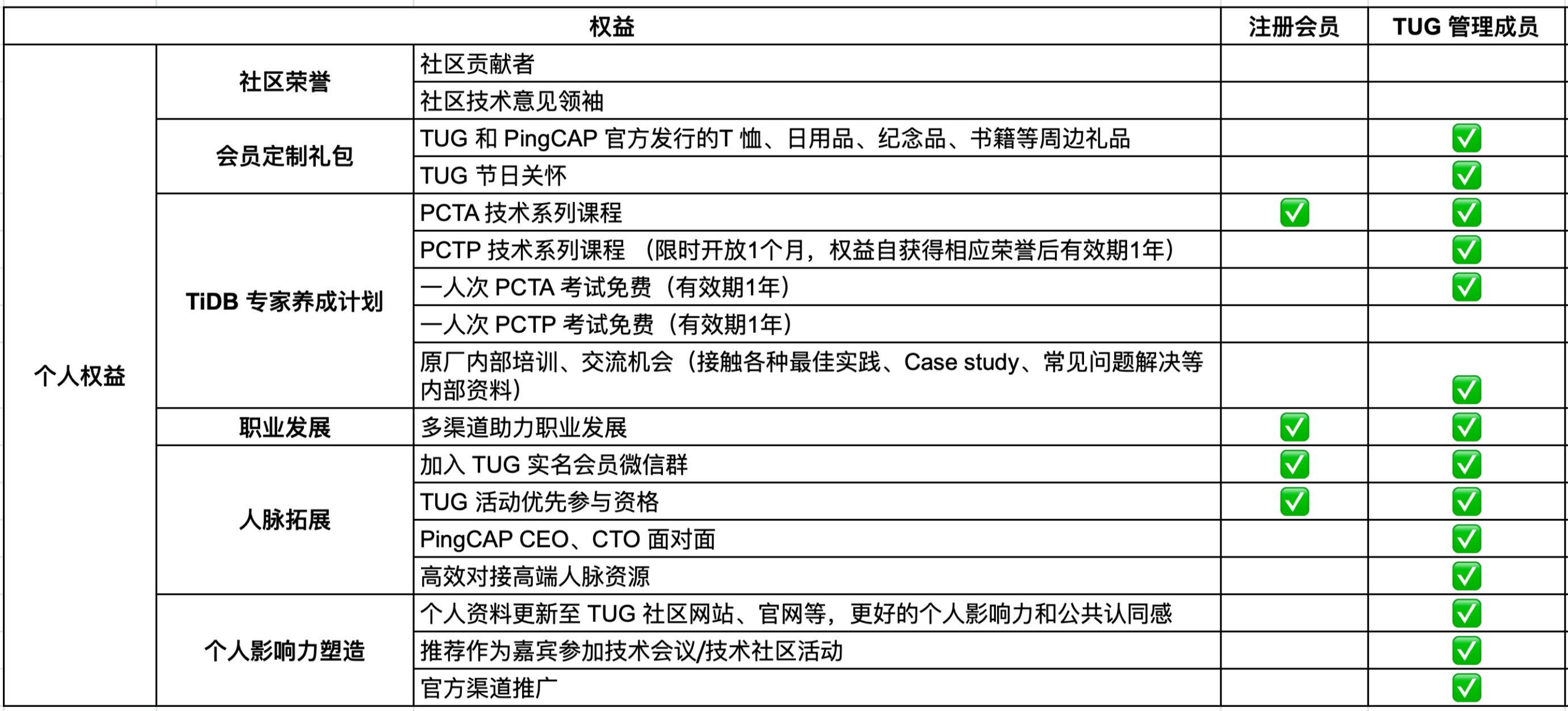 TUG 会员权益: