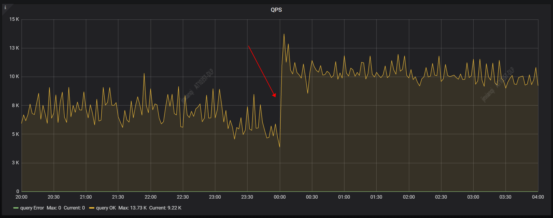 QPS 也明显提升,从 8K 左右上升到 10K 以上