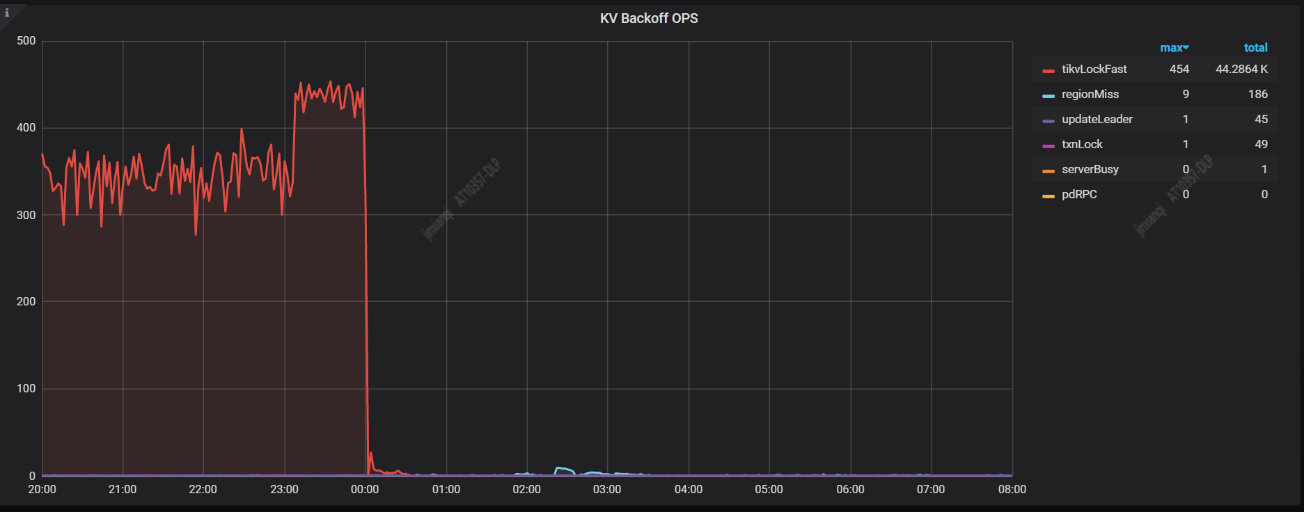 【 tikvlockfast 】:读写冲突,读请求碰到还未提交的数据,需要等待其提交之后才能读。少量这个错误对业务无影响,大量出现这个错误说明业务读写冲突比较严重,冲突严重则会大幅降低集群整体的效率。