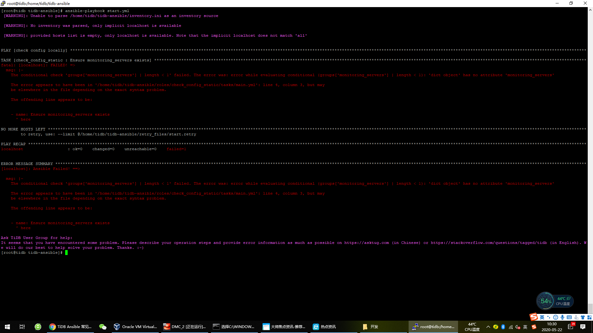 Found inventory file /home/tidb/tidb-ansible/inventory.ini, parsing…
