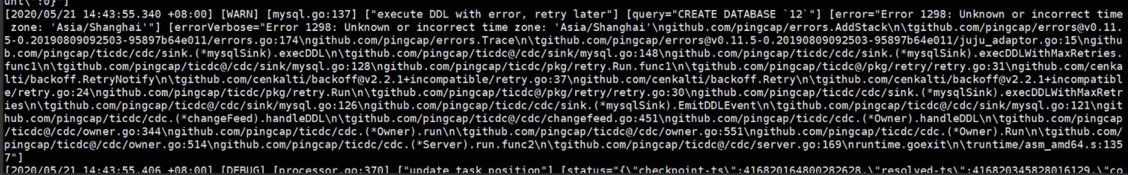 - 查看 cdc 日志 “Error 1298: Unknown or incorrect time zone: ‘Local’”