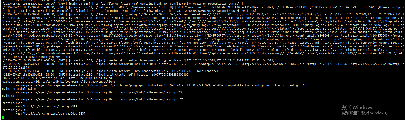 V3.0.8 部署都部署完了,就启动的时候port 起不起来,去查看tidb.log 得到如下错误