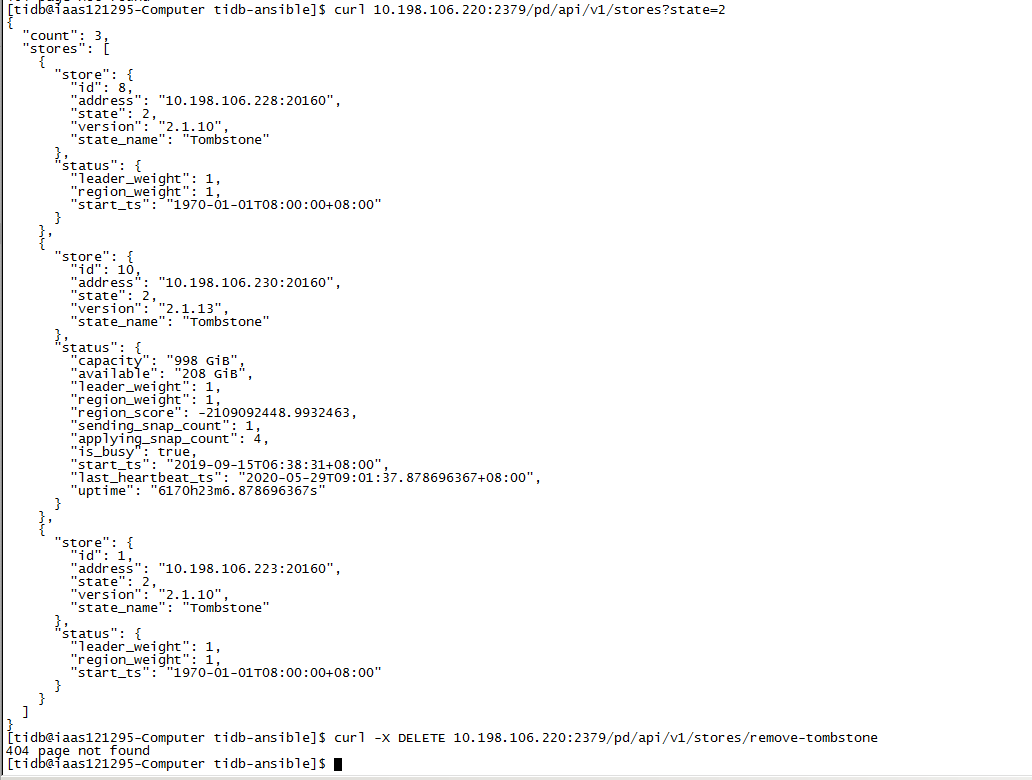 说明:上述命令在掉电故障的 TiKV 上执行,且TiKV 处于 stop 关闭状态