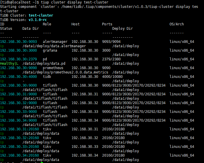 Error: run /home/tidb/.tiup/components/cluster/v1.0.3/tiup-cluster (wd:/home/tidb/.tiup/data/S1IZT5K) failed: exit status 1