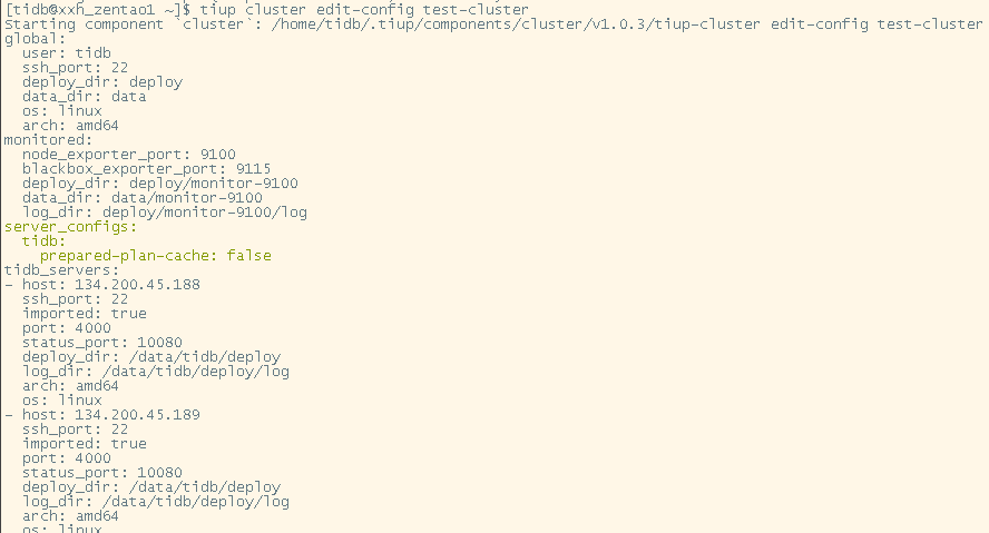 - [ Serial ] - InitConfig: cluster=test-cluster, user=tidb, host=xxx.xxx.xxx.190, path=/home/tidb/.tiup/storage/cluster/clusters/test-cluster/config-cache/prometheus-9090.service, deploy_dir=/data/tidb/deploy, data_dir=[/data/tidb/deploy/prometheus2.0.0.data.metrics], log_dir=/data/tidb/deploy/log, cache_dir=/home/tidb/.tiup/storage/cluster/clusters/test-cluster/config-cache