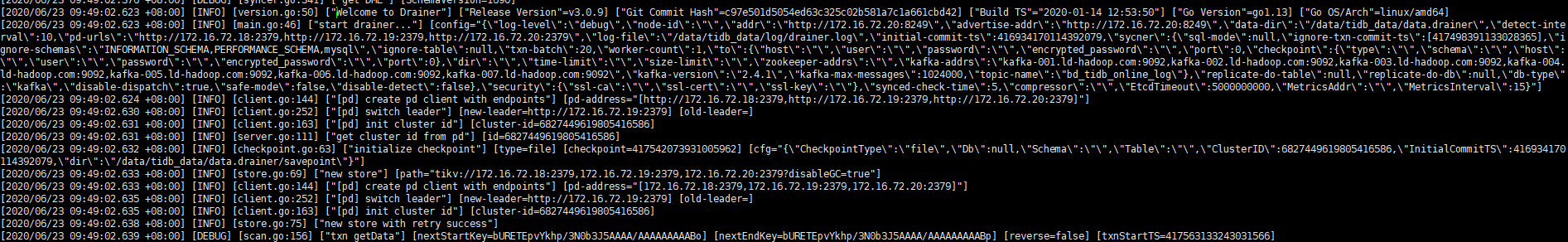 使用drainer同步binlog下游到kafka遇到一些问题: