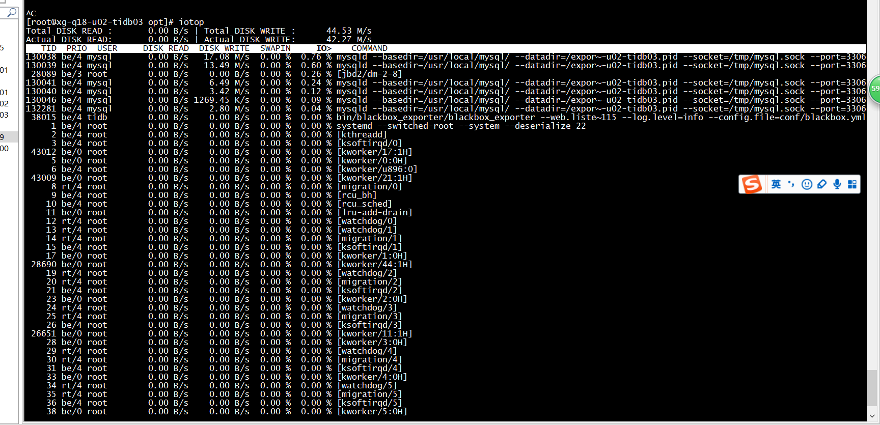 - 麻烦了。 还有一个疑点,您可以看到空负载时,使用多的是一个 jdb2 进程。 网上看了下可能会有问题。