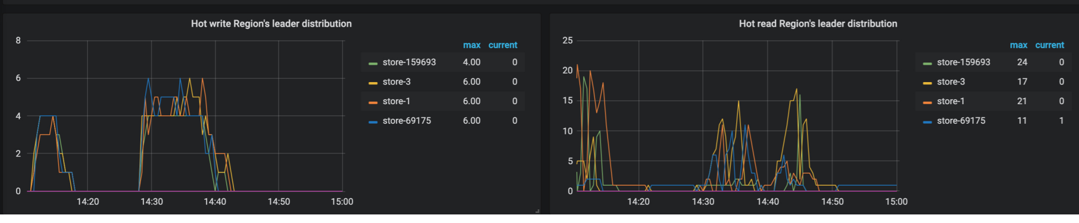 从监控来看,基本都在12这个节点,而且有读热点和写热点