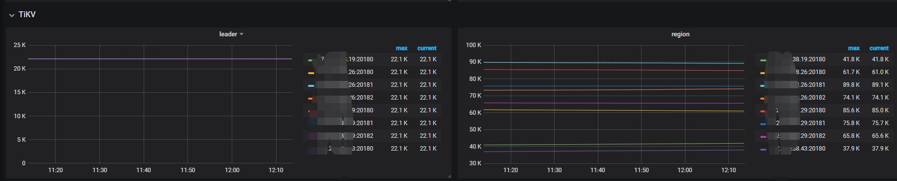 已经从原来的两台物理机6个tikv ,又新增了两个物理机,分别新增了扩容了1个tikv 实例。现在是8个tikv