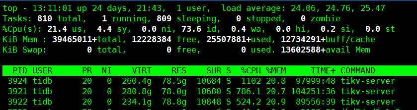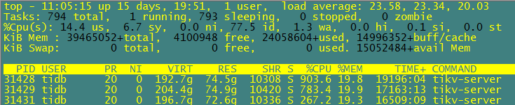 3.tikv-server 负载情况(40C 376G 配置) (两台物理机,每台3个tikv-server)