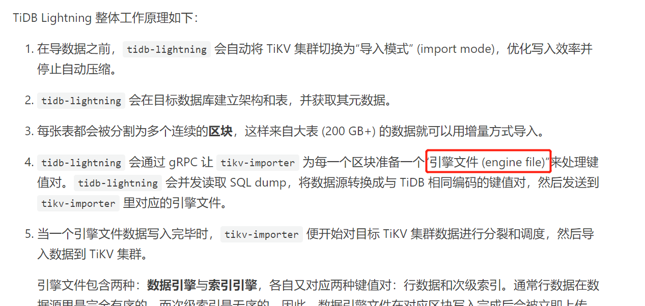 这个是 Lightning 自动处理的,不需要认为干预。按照 Lighting 导入操作来导入数据就可以了,其他的地方交给 Lightning 就好了。https://docs.pingcap.com/zh/tidb/stable/tidb-lightning-glossary#engine