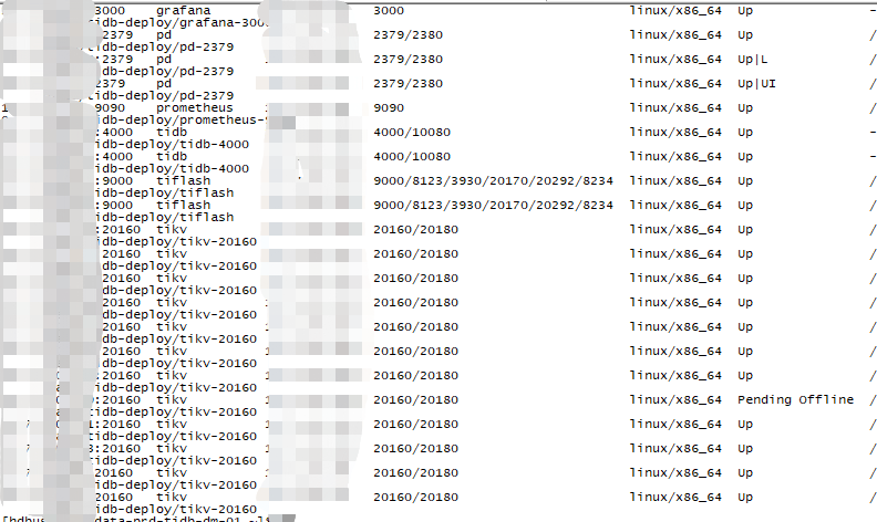 1、用tiup部署的,之前一台tikv是down的状态,现在被我缩容了,所以现在的状态是Pending Offline