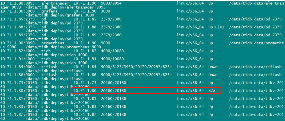 通过tiup cluster display tidb-test 查看,却还能看到这个节点,如果想重新把这个节点扩容回去,会导致一直没办法扩容,报端口、路径冲突。