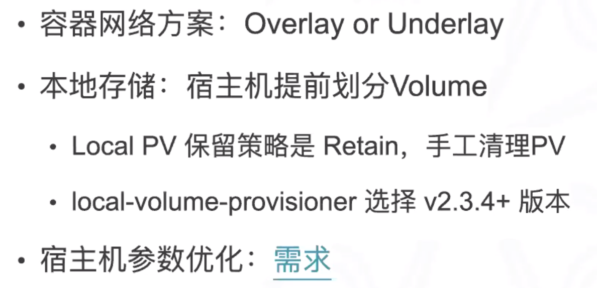 【落地】对现有硬件体系有哪些调整,如网络、本地存储、宿主参数优化?