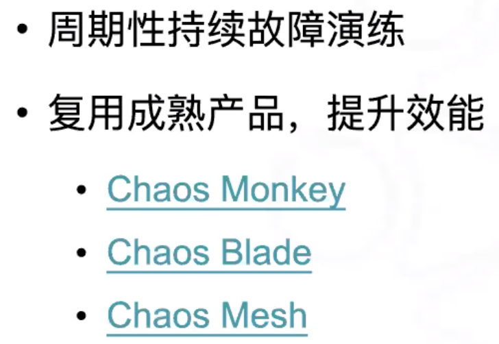 朱博帅:内部正在做 chaos mesh 的整合,结合和 chaos blade 的各自优点。这两者的对比,chaos mesh 做的更细致些,比如内核级别的故障注入,还有 pod 短暂无效的场景,chaos mesh 覆盖的更广一些