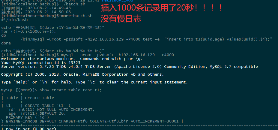 - 【问题描述】:tuip安装v4.0.4版本,使用默认参数,tikv 3节点 ssd 8c 16g;pd tidb-server 共用一台机器 ssd 24c 16g插入小表 insert into t(id) vaues(n) 很慢,一秒 60条,束手无策