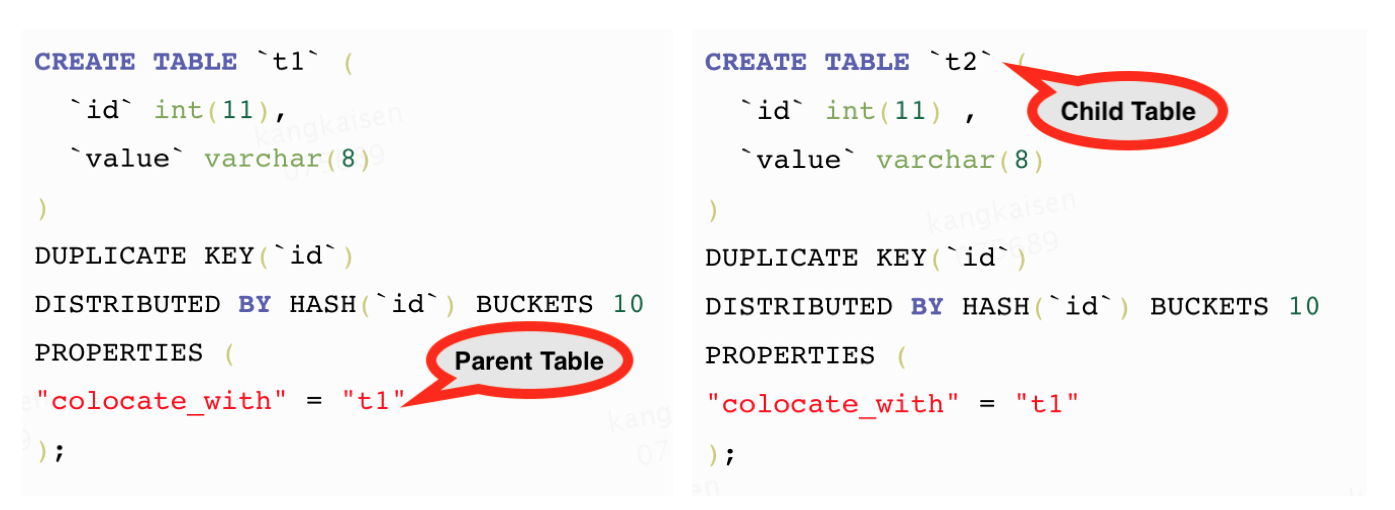 - 【问题描述】:通过Crate Table DDL时,指定常用关联表之间的 Colocate_with 关系, 实现两表按主id共生分布,本地直接关联。 主要用在OLAP分析场景表关联。