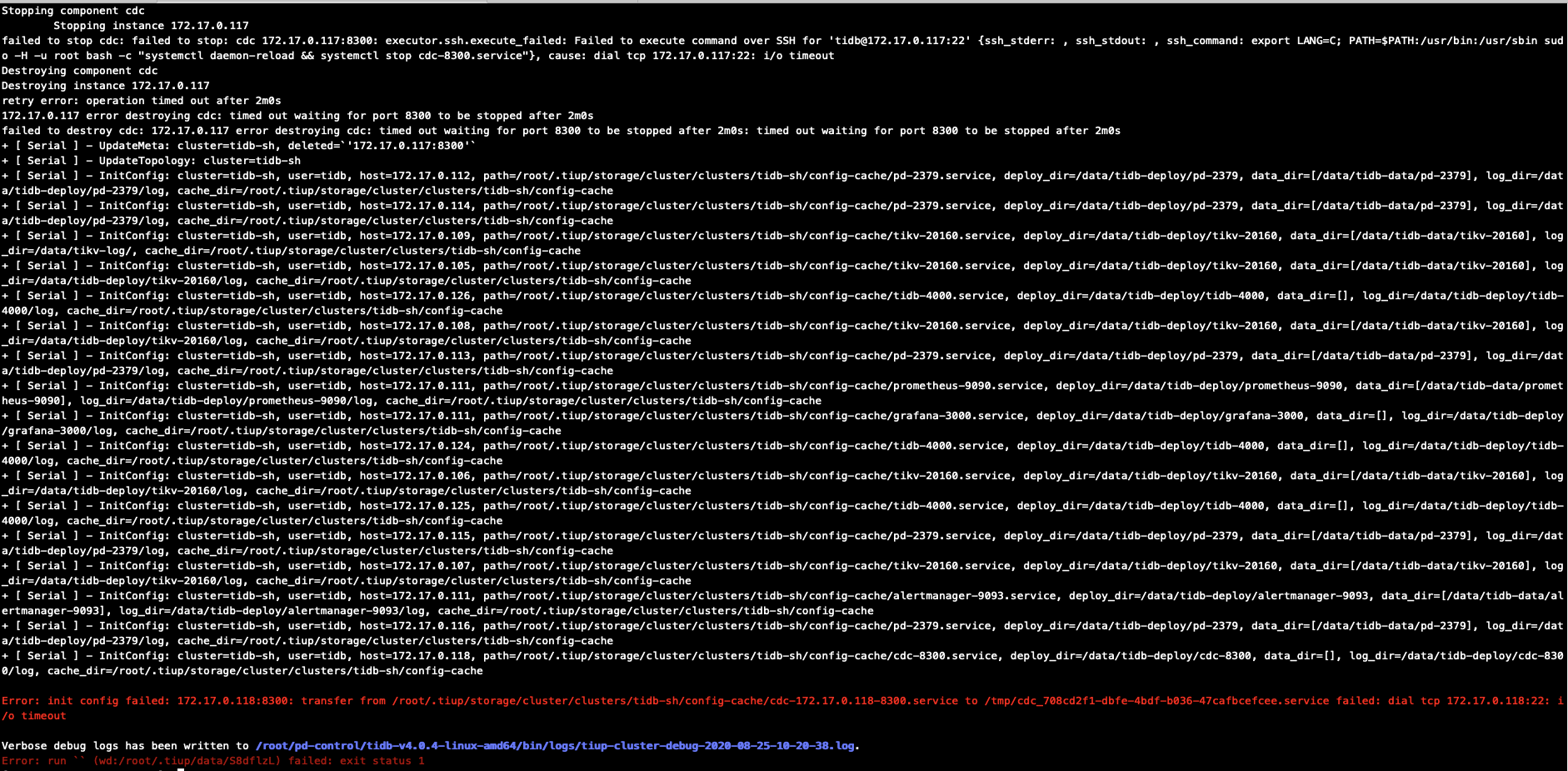 1 tcp io timeout是正常的 我之前释放了这2台cdc ecs节点 所以肯定是不通的