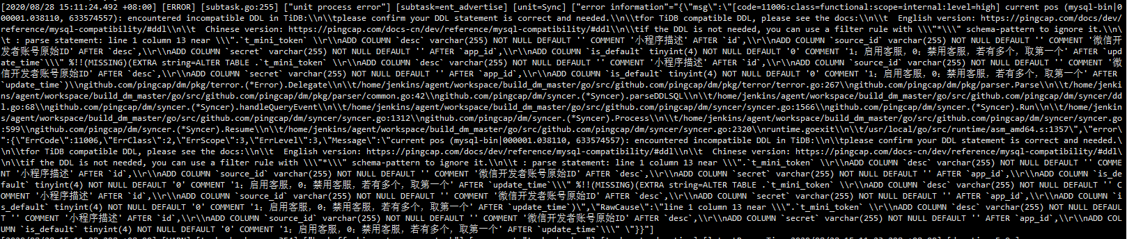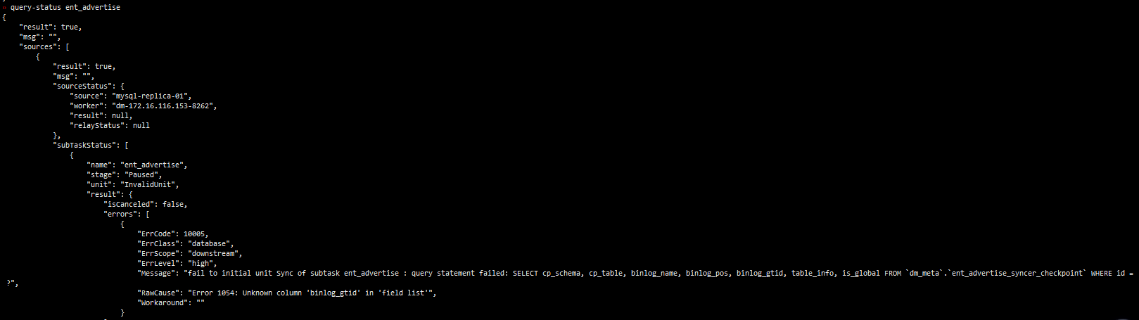 看一下当前任务的状态,找到出错的binlog位置(而不是看日志的binlog位置)