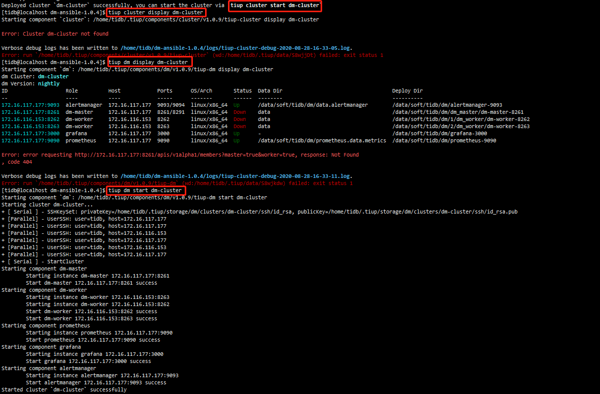 TiUP cluster start dm-cluster 不正确问题已经修复,今天会发一个版本,在下个版本已经修复,可以关注下发版信息做下升级。