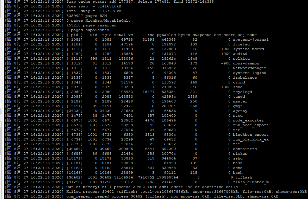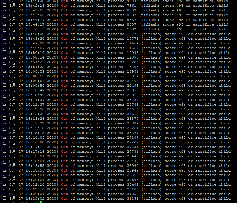 2、查看tiflash、所在服务器发现一直Out of memory,不断的重启tiflash,该如何排查定位问题?