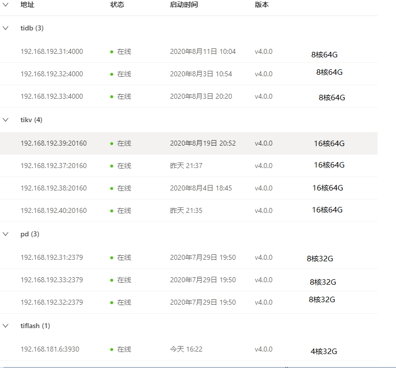 - TIDB版本4.0.0 使用Tiup管理集群