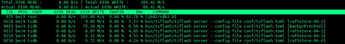 - 【问题描述】:写入数据量不大,但tiflash磁盘io很高。