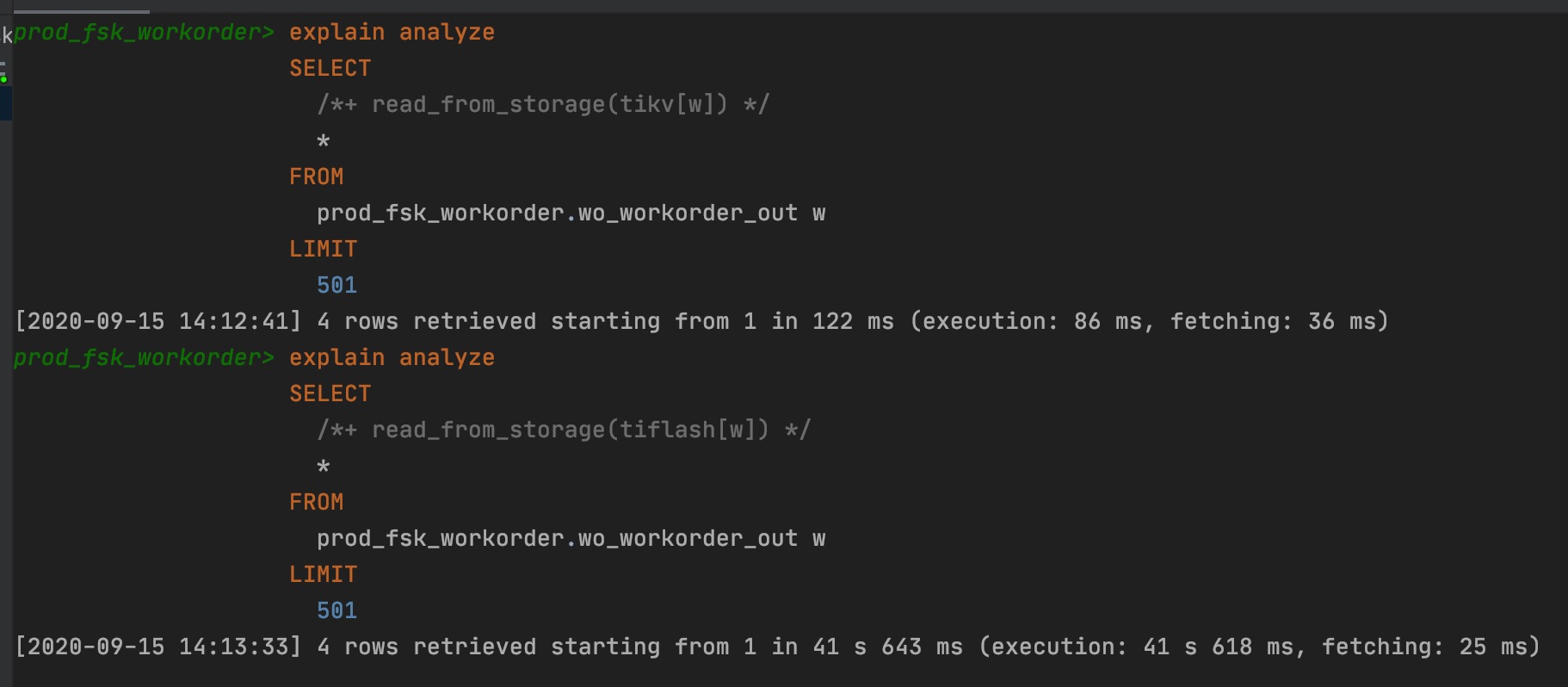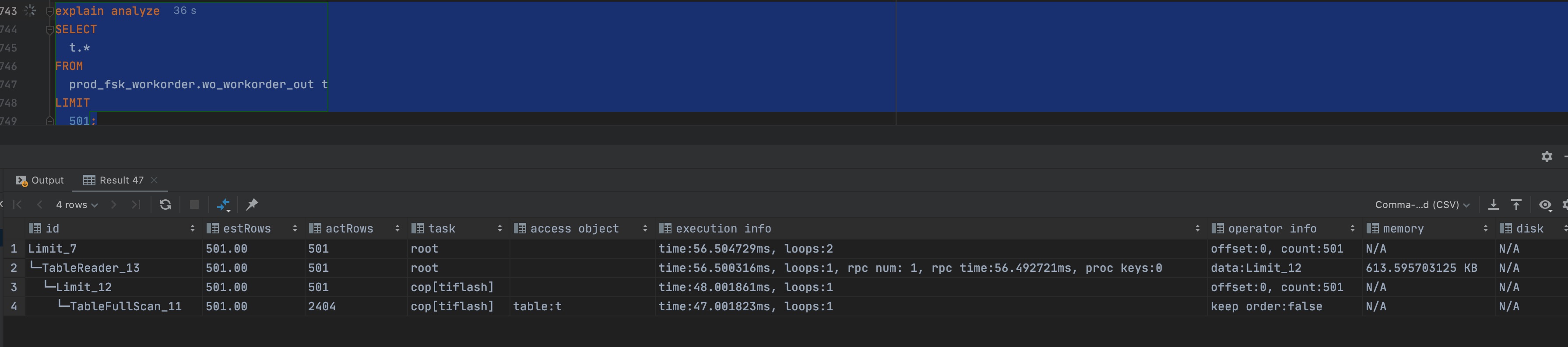 通过 explain 发现走tiflash,查询巨慢,40s+