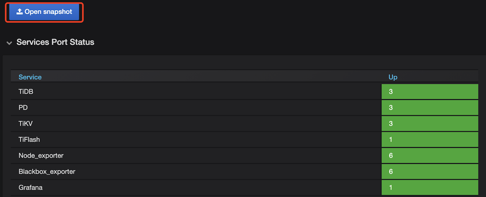 2.点击 “Open snapshot” ,选择之前导出的 snapshot 文件