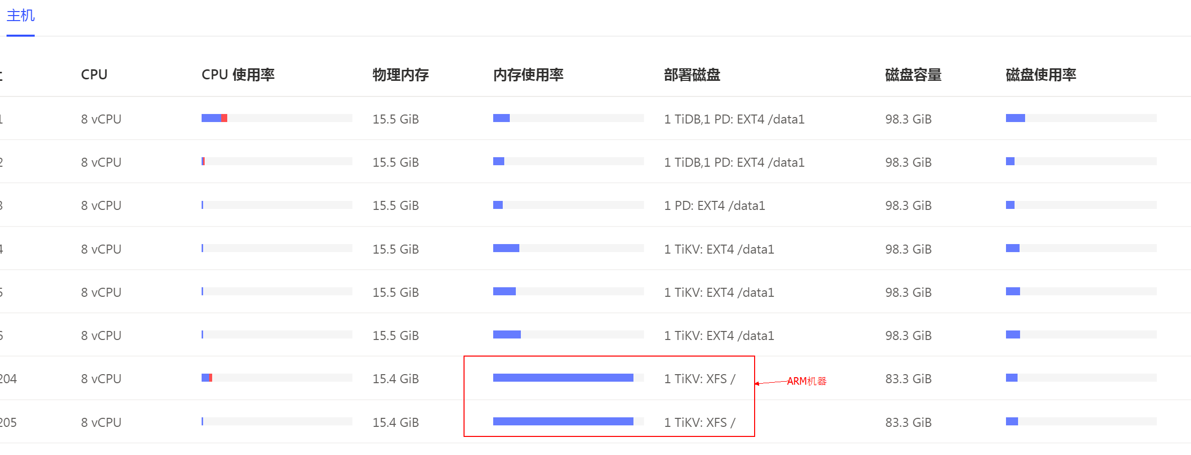 1.最后一个实例arm机器,安装的是tikv实例